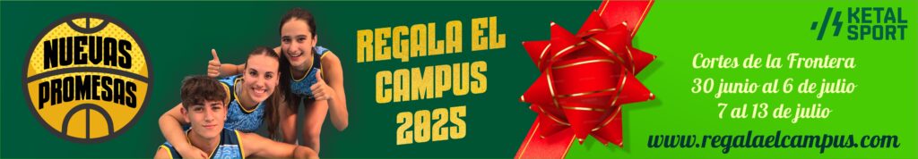 Desde el próximo miércoles 4 de diciembre a las 12:00 horas del mediodía, se activará en esta misma web la tradicional promoción “Regala el Campus” que permitirá hacer un fantástico regalo y de paso, asegurarse ya una plaza en la próxima edición del Campus Nuevas Promesas 2025 que tendrá lugar en Cortes de la Frontera desde el 30 de junio al 6 de julio (1er turno) y del 7 al 13 de julio (2º turno) . Toda la información de la promoción, los pasos a seguir, así como las ventajas y condiciones se podrán consultar aquí mismo desde donde se podrá hacer la solicitud.